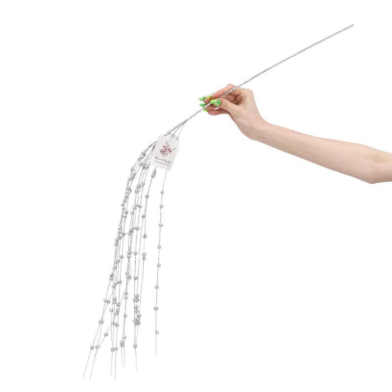 Ветка глиттерная искусственная "Роскошь" Серебряная
