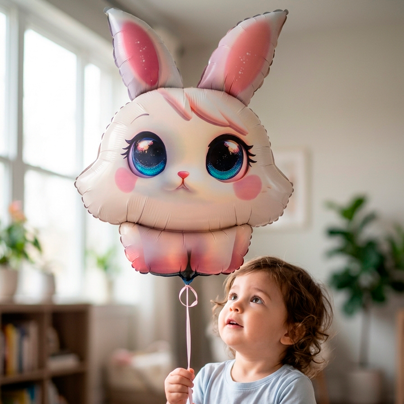 Фольгированный шар в форме милого зайчика с большими глазами — это уникальный и креативный элемент декора, который идеально подойдет в качестве дополнения к подарку на любое торжество. Рекомендуется надувать гелием. Имеет встроенный клапан - что упрощает надувание. Поставляется в красочной упаковке с цветным изображением шара, благодаря чему можно выставлять товар в сдутом виде.