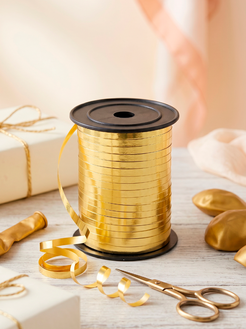 Полипропиленовая лента предназначена для декорирования и фиксации воздушных шаров, а также используется в упаковке подарков, декорировании цветочных букетов и других праздничных оформлениях.