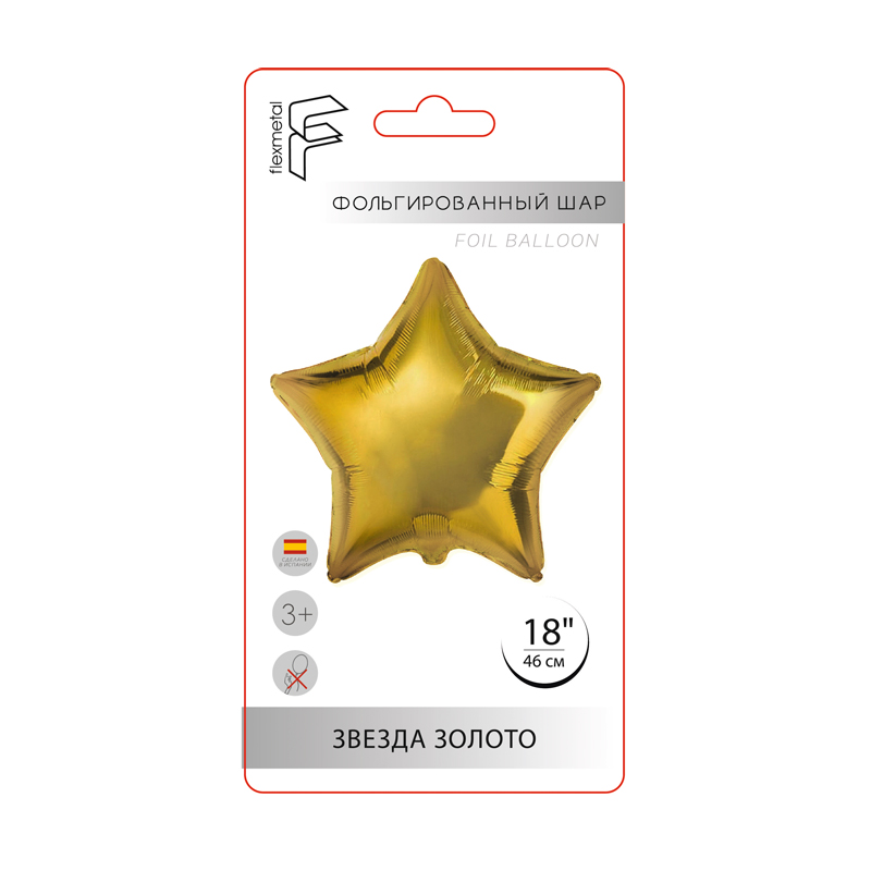 Звезда Золото в упаковке, фольгированный шар