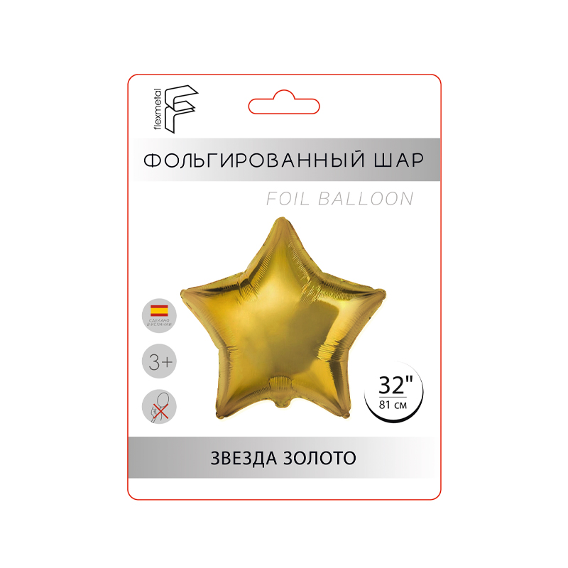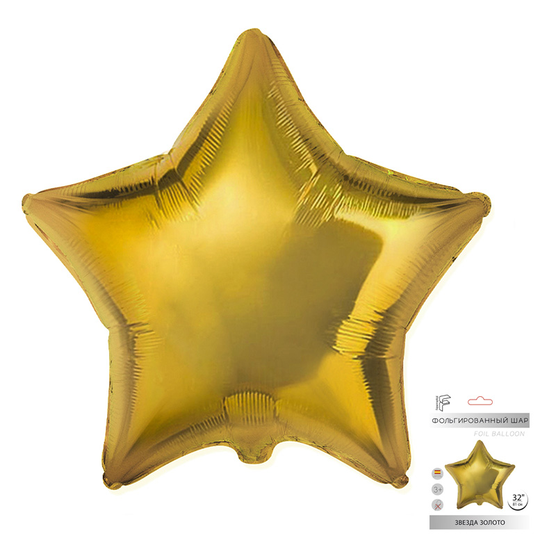 Звезда Золото в упаковке, фольгированный шар